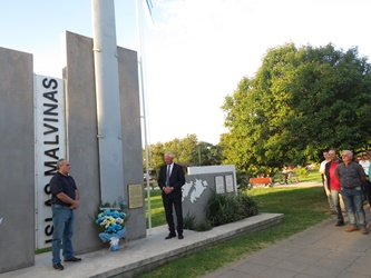 Luego, los presentes anteriormente mencionados se trasladaron a Plaza “San Martín”, para depositar, al pie del monumento de Malvinas, la tradicional ofrenda floral en memoria de los caídos.