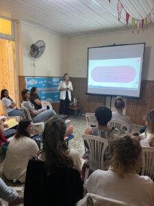 La actividad fue organizada por el Servicio Local de Protección de Niñez junto a la Guardería Municipal “Pata Cata” y dictado por la Profesora en Psicología María Belén Greatti. Participaron de la actividad: Belén Griffa (Directora de Desarrollo Social), Candela Pepino (Coordinadora de Diversidad y Género), madres de niños que van a la Guardería “Pata Cata”, docentes y Cuidadoras de niños de la primera infancia.