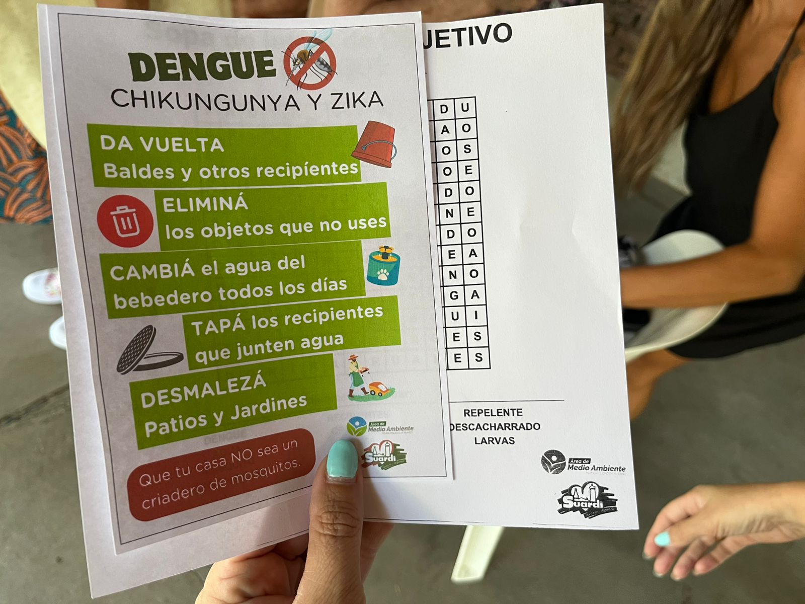 La encargada del Área de Ambiente del Municipio Carina Campana junto al Inspector Sergio Iturre se hicieron presentes en la Colonia de Adultos Mayores «Actitud Verano» para desarrollar actividades de prevención y concientización sobre el Dengue, la enfermedad transmitida por el mosquito Aedes Aegypti.