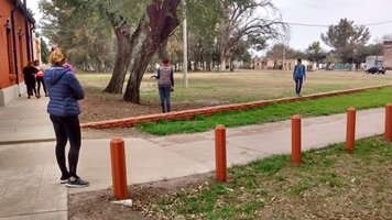 Actividad de plantación de niños de las Escuelas Primarias de la ciudad, “Domingo F. Sarmiento” N° 6141 y Bartolomé Mitre N° 559, en Loteo Sella, Ciclovía Norte, Parque comunal Antonio Cavallo.