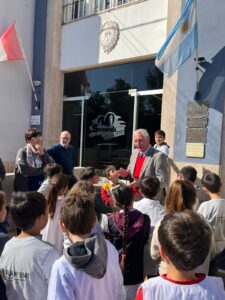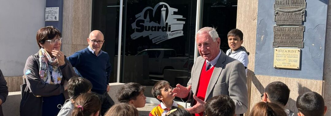 Elisabet Serafín, Coordinadora del Museo Archivo Histórico de la Municipalidad de Suardi, llevó a cabo la charla “Suardi, Espacio e Historia” dirigida a los alumnos y docentes de 3er grado A, B y C de la Escuela “Bartolomé Mitre” N* 559.