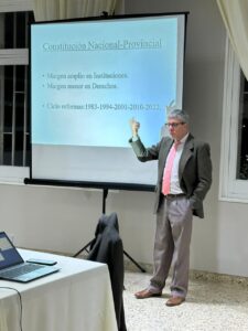 En la noche de este jueves, en planta alta de la Municipalidad de Suardi, se llevó adelante una charla, abierta a todo el público, sobre los temas que tratará la Reforma de la Constitución Santafesina, a cargo del Dr. en Ciencias Jurídicas y especialista en Derecho Constitucional y Municipal, Enrique José Marchiaro.