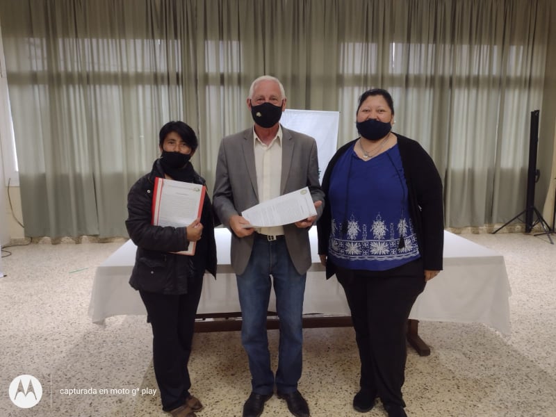 En la mañana de este miércoles 13/10, nuestro Intendente Hugo Boscarol recibió a las Representantes de la Escuelita de Fútbol de Barrio San Miguel Mónica Gamarra y Lorena Monge, y les entregó el contrato de comodato del terreno donde funciona la escuelita.