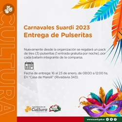 Como es costumbre, nuevamente desde la organización se regalará un pack de tres (3) pulseritas (1 entrada gratuita por noche), por cada bailarín integrante de la comparsa.