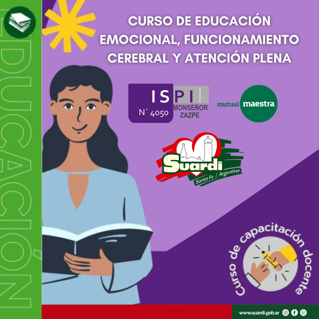 La Coordinación de Educación de la Municipalidad de Suardi extiende la invitación a docentes para participar del curso de educación emocional, funcionamiento cerebral y atención plena, que brindará el ISPI Nº 4050 “Monseñor Vicente Zazpe”.