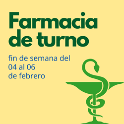 Farmacias de turno – 04, 05 y 06 de febrero Publicado el 2 febrero, 20223 febrero, 2022 por c2190167 Publicado en Farmacia de turno y etiquetado Farmacia.