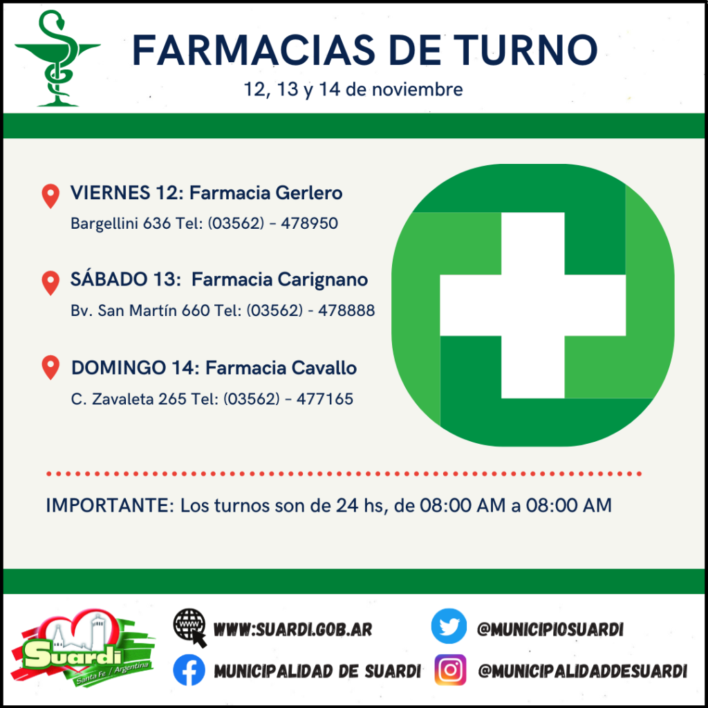 Farmacias de turno – 12, 13 y 14 de noviembre Publicado el 11 noviembre, 202112 noviembre, 2021 por c2190167 Publicado en Farmacia de turno y etiquetado Farmacia.