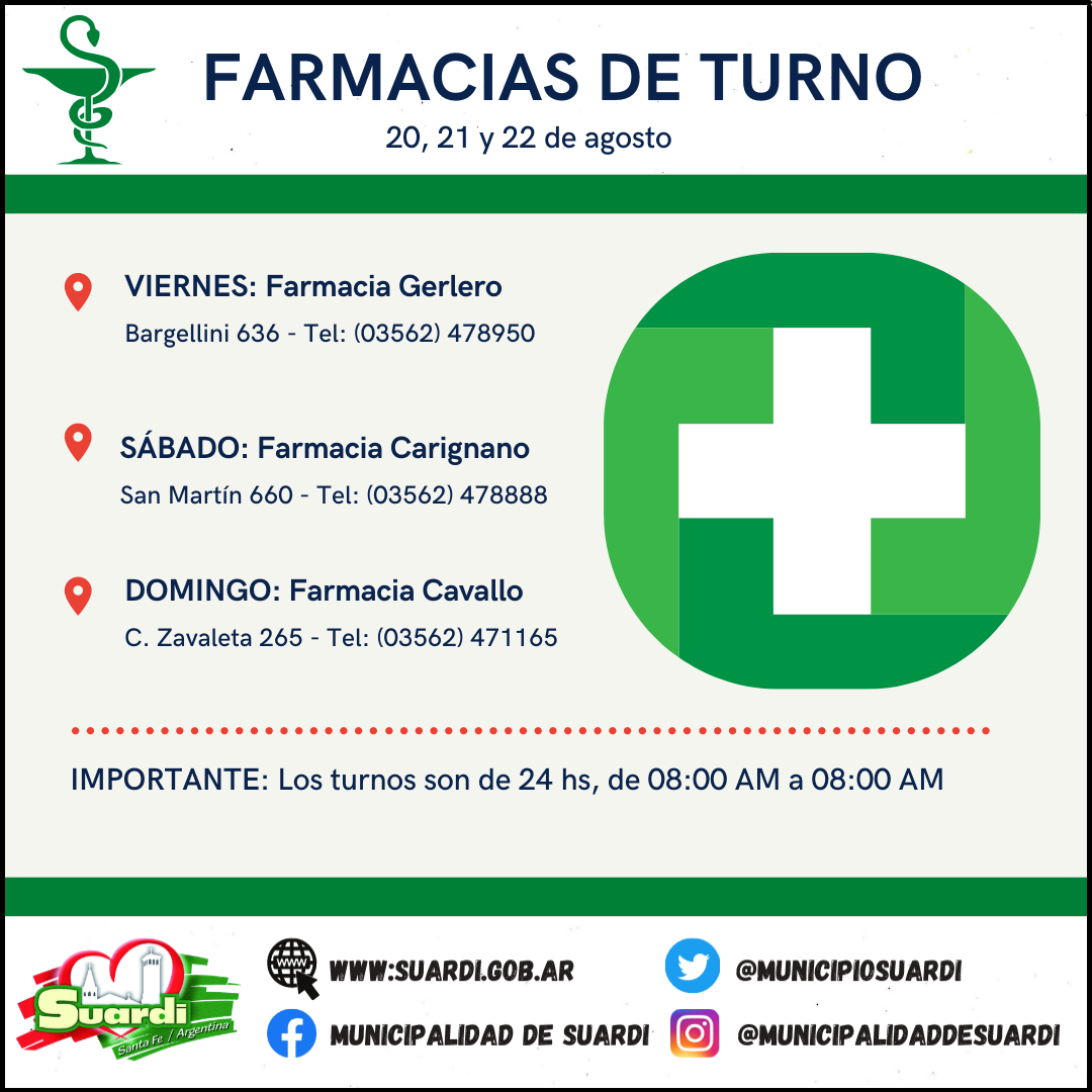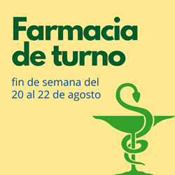 Farmacias de turno – 20, 21 y 22 de agosto Publicado el 20 agosto, 202127 agosto, 2021 por c2190167 Publicado en Farmacia de turno y etiquetado Farmacia.