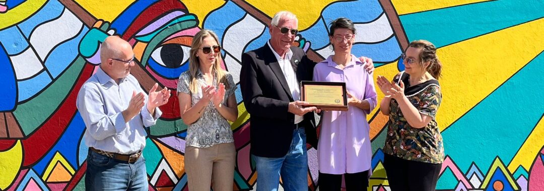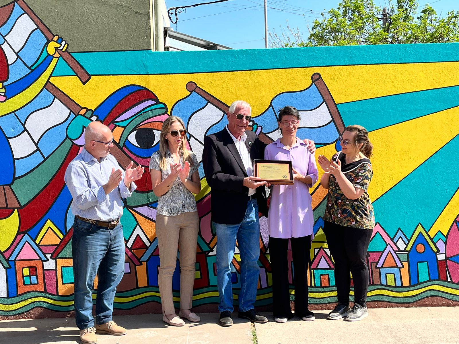 En la mañana de este martes 10/10 se realizó la presentación del mural de la artista local Claudia Manelli, realizado en el marco del Concurso Provincial: «40 Murales, 40 Años de Democracia», en la Terminal de Ómnibus de nuestra ciudad, destacando su aporte artístico y cultural.