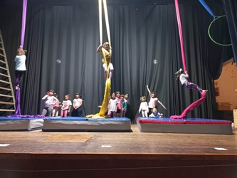 Una de las propuestas ofrecidas es el Taller de Acrotelas / Danza Aérea “Tocando El Cielo”, el cual tiene a cargo a la Profesora Sandra Goyenechea, y está destinado a todo el público, a partir de los 4 años.