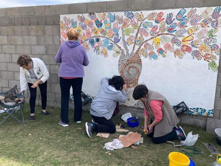 En la mañana de hoy, viernes 16/09, integrantes del Concejo de Adultos Mayores; junto a Nancy Giacomelli, llevaron tareas de mantenimiento del mural: “Árbol de la Vida” que se encuentra en la “Plaza de la Mujer”.