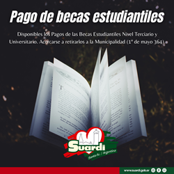 La Municipalidad de Suardi informa que ya están disponibles los Pagos de las Becas Estudiantiles, nivel Terciario y Universitario.