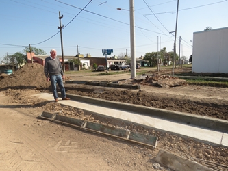 En primera instancia, supervisó los trabajos de cordón cuneta que se vienen llevando a cabo en calle Mitre, entre J. Marengo y S. Gilli.