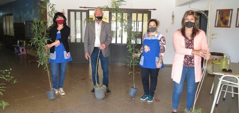 Desde la Municipalidad, el Intendente Sr. Hugo Boscarol y la Tec. Carina Campana del Área de Medio Ambiente, entregaron 4 ejemplares arbóreos nativos a las Representantes del Jardín de Infantes Nº165 María Rosa Griffa de Ortolano Directora Miriam Moriconi y Vicedirectora Lorena Paira.