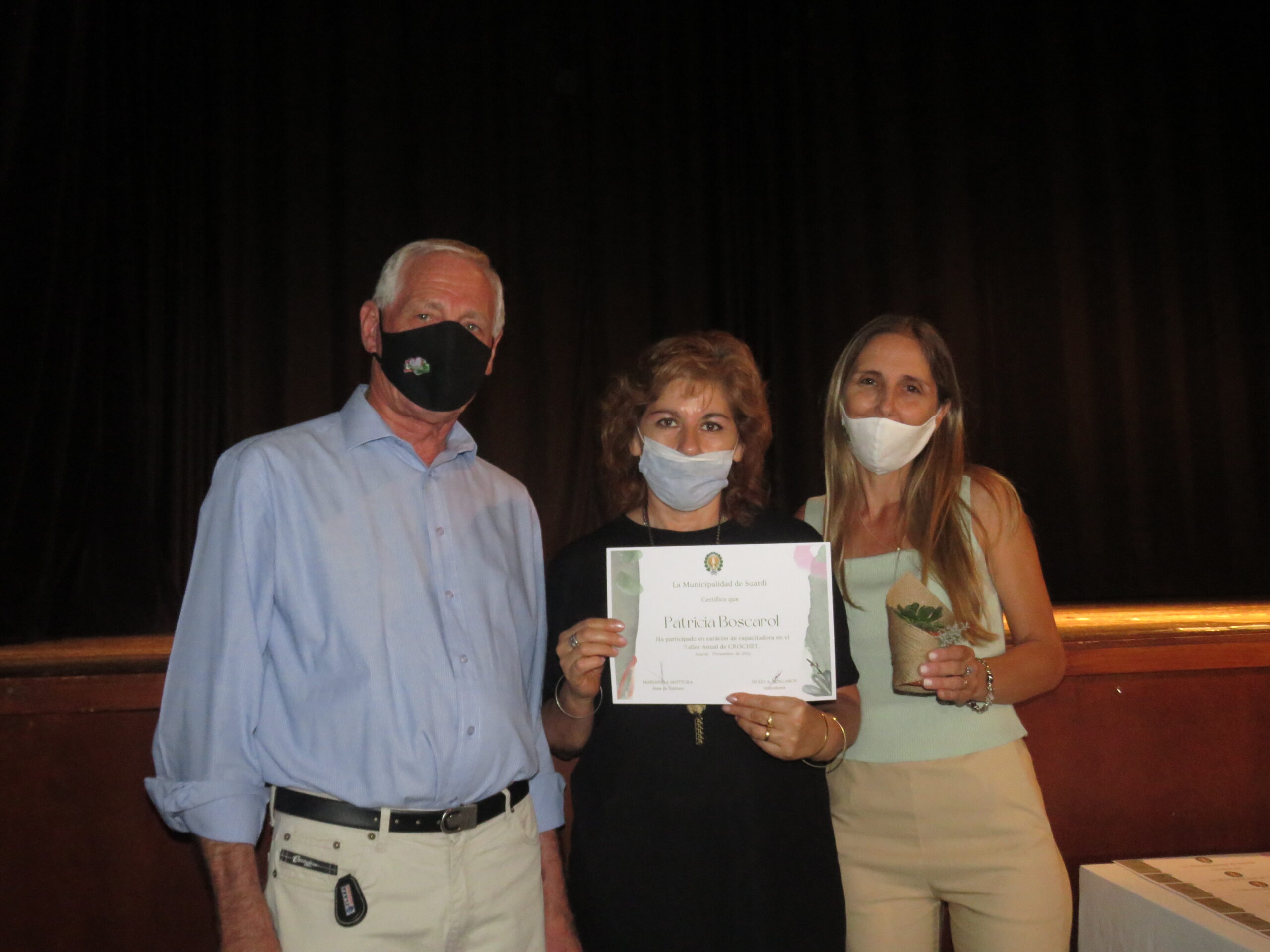 Luego de las Palabra de las autoridades presentes se realizó la entrega de los certificados en primer lugar a los Capacitadores, los cuales fueron: Lic. Mariangeles Gallizzi, Procuradora Ana Malizia, Psicomotricista Gabriela Gaido, Médico Mauricio Juárez, Lic. En Enfermería Profesional Liliana Anguino, Lic. en Kinesiología Ivana Franco, Terapista Ocupacional Virginia, Sampietro, Lic. en Nutrición Ana Laura Gramaglia, Arquitecta Raquel Zbrun, y Psicopedagoga Mabel Borgonovo, quién además tuvo a cargo la Coordinación de la Capacitación.