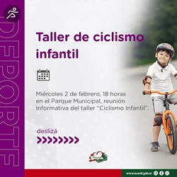 El próximo miércoles 2 de febrero, desde las 18 horas, en el Parque Municipal «Antonio Cavallo» se desarrollará la reunión informativa del Taller “Ciclismo Infantil”.