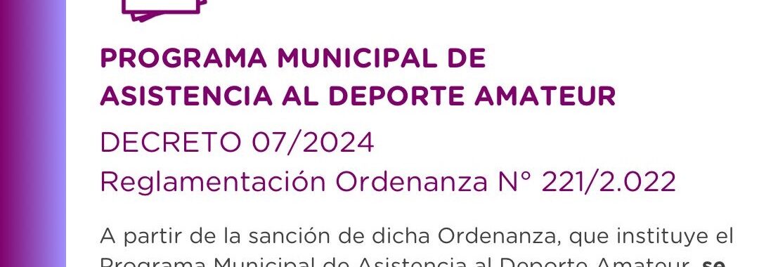 🟣 Decreto 07/2024 – Reglamentación Ordenanza N°221/2022:Decreto N° 07-2.024 Reglamentario Programa ayudas deporte.-