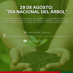 El próximo lunes 29 de agosto es el “Día Nacional del Árbol”, por lo que se pensó como actividad alusiva al día llevar adelante, desde las 14:00 hs, la plantación de las diferentes especies arbóreas nativas que integrarán la nueva plaza ubicada en el Barrio “Los Boulevares” (este).