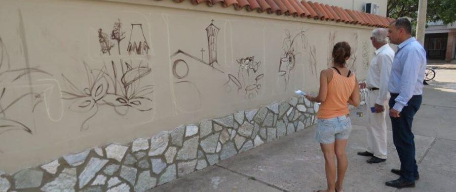 Luego de mucho trabajo de la muralista Mariana Reyes, proveniente del Ministerio de Innovación y Cultura Provincial, hoy podemos decir que la intervención en una de las paredes de «Estación de Arte» está terminada.