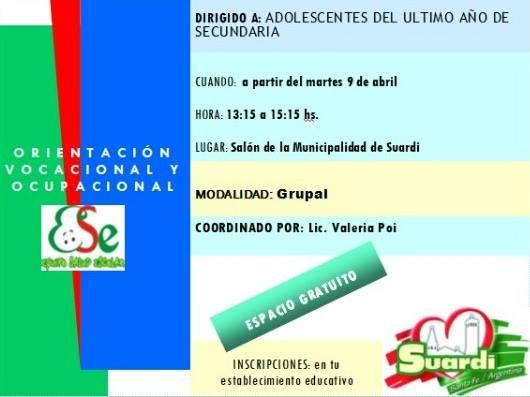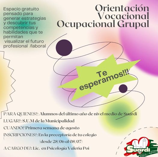 La Municipalidad de Suardi informa que, después de las vacaciones de invierno, darán inicio los espacios de educación vocacional y ocupacional de manera grupal.