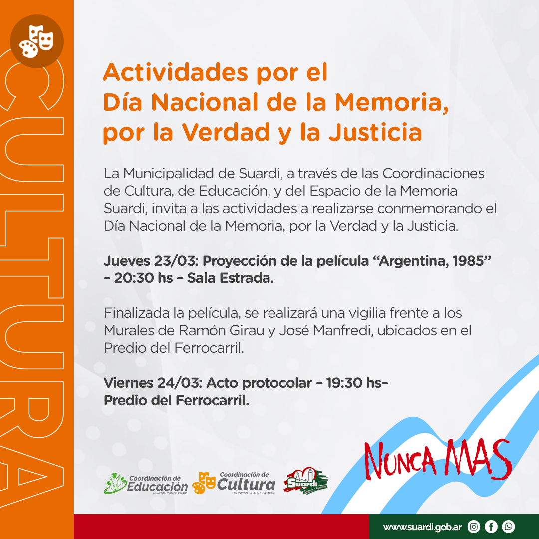 La Municipalidad de Suardi junto al Espacio de la Memoria de Suardi, formado por familiares y amigos de las víctimas del terrorismo de estado, acordaron, a través del Proyecto: “Memoria en la pared”, la realización de murales de Ramón Girau y José Manfredi.