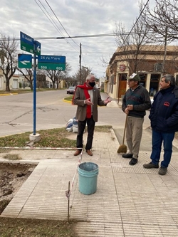 En este caso los trabajos se realizan en torno al Banco Santa Fe, más precisamente sobre calles 25 de Mayo y M. Locatelli.