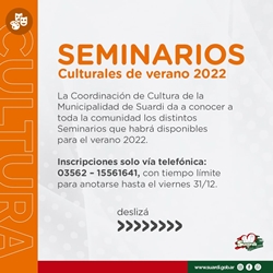 La Coordinación de Cultura de la Municipalidad de Suardi da a conocer a toda la comunidad los distintos Seminarios que habrá disponibles para el verano 2022.