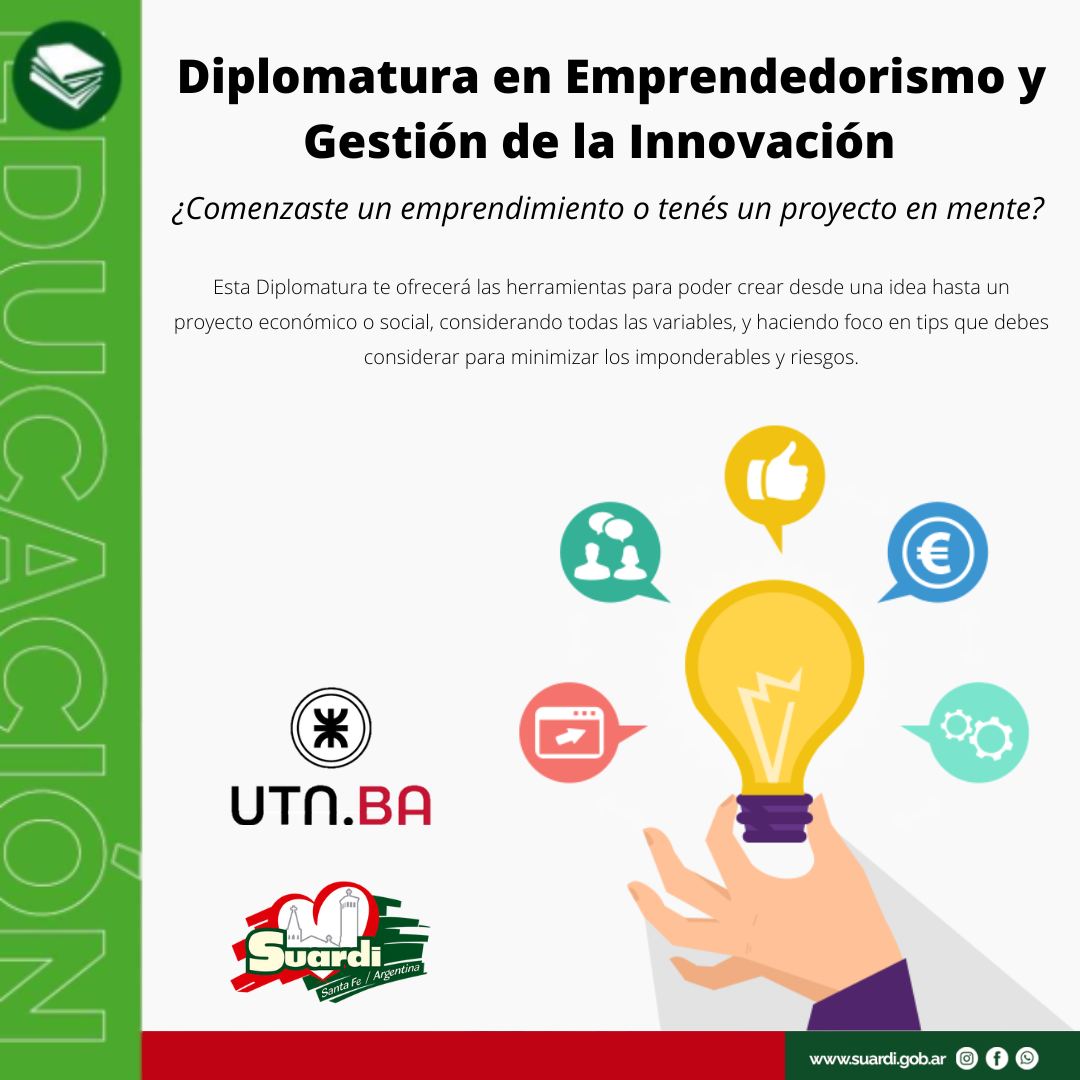 Esta Diplomatura te ofrecerá las herramientas para poder crear desde una idea hasta un proyecto económico o social, considerando todas las variables, y haciendo foco en tips que debes considerar para minimizar los imponderables y riesgos.