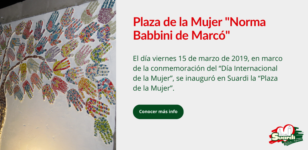 El día viernes 15 de marzo de 2019, en marco de la conmemoración del “Día Internacional de la Mujer”, se inauguró en Suardi la “Plaza de la Mujer”.