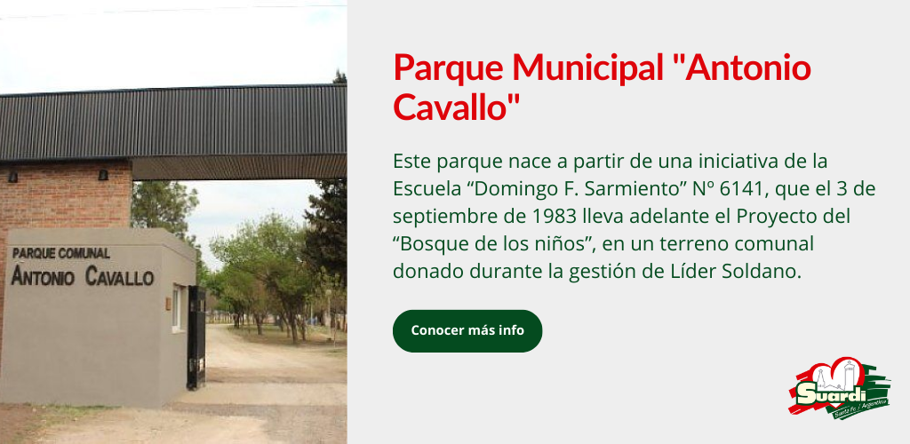 UBICACIÓN: El Parque Municipal “Antonio Cavallo” está ubicado al Sur de nuestra ciudad, entre la Ruta Provincial Nº 23 y la Calle Luchinelli.