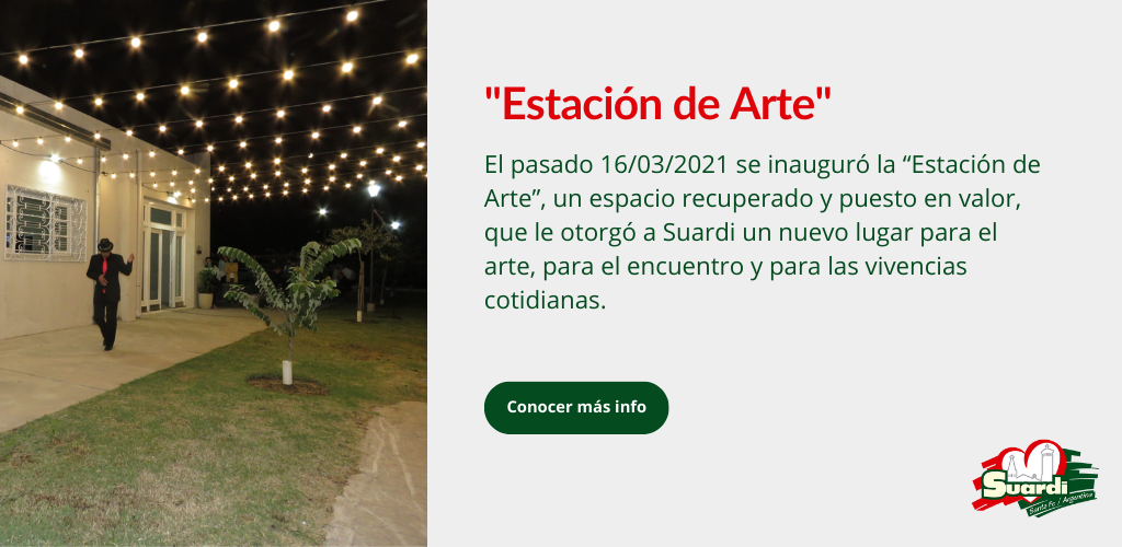 El pasado 16/03/2021 se inauguró la “Estación de Arte”, un espacio recuperado y puesto en valor, que le otorgó a Suardi un nuevo lugar para el arte, para el encuentro y para las vivencias cotidianas.