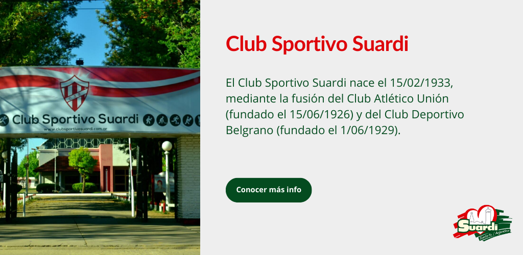El Club Sportivo Suardi nace el 15/02/1933, mediante la fusión del Club Atlético Unión (fundado el 15/06/1926) y del Club Deportivo Belgrano (fundado el 1/06/1929).